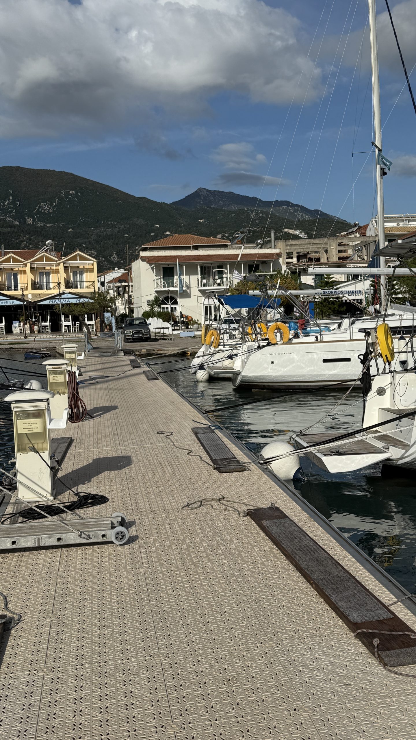 - Own jetty/pontoon with lazy lines, idyllically situated in Nydri, on the east coast of the island of Lefkada. Water, electricity, WiFi and sanitary facilities are available free of charge for our guests.
